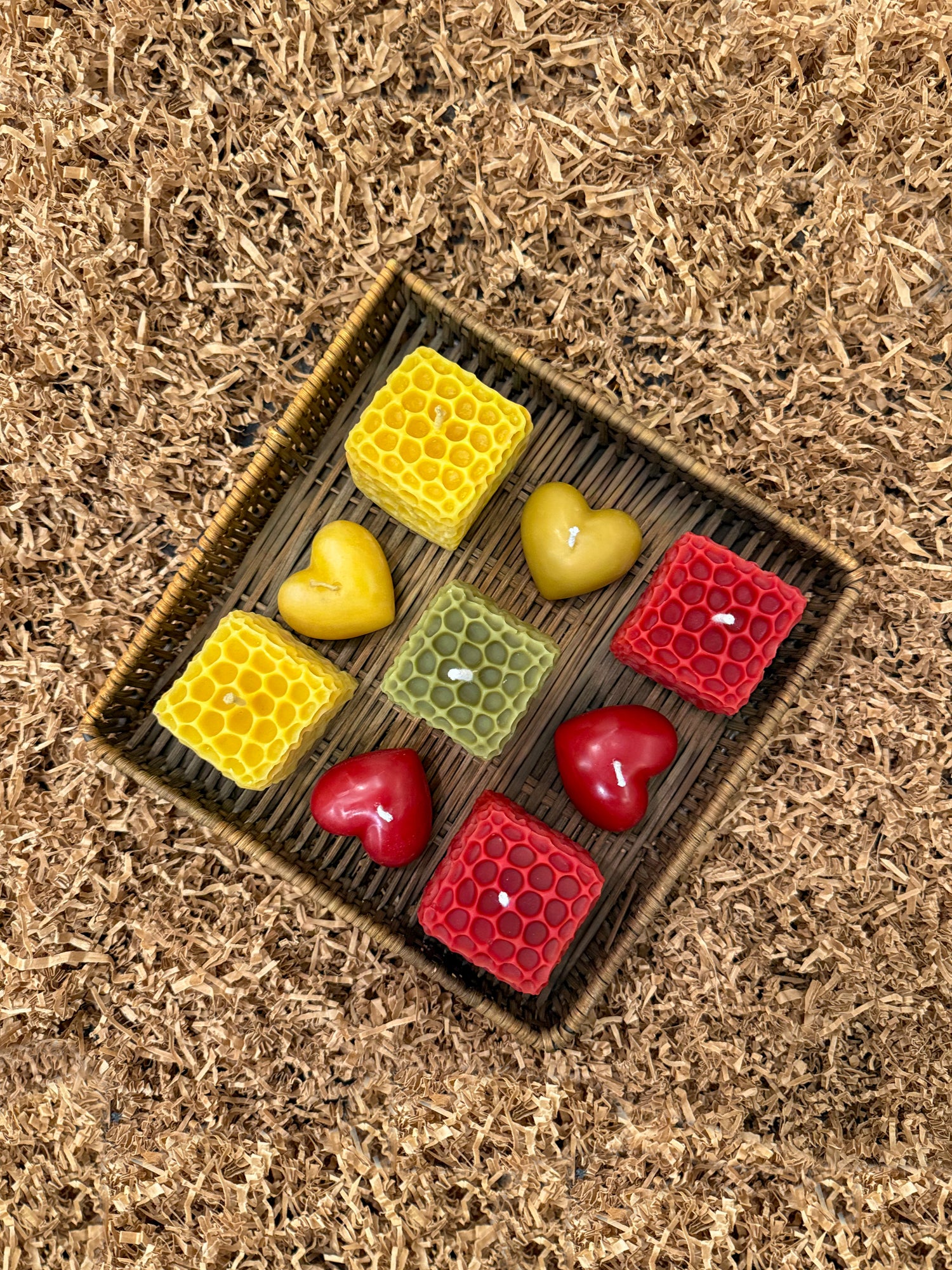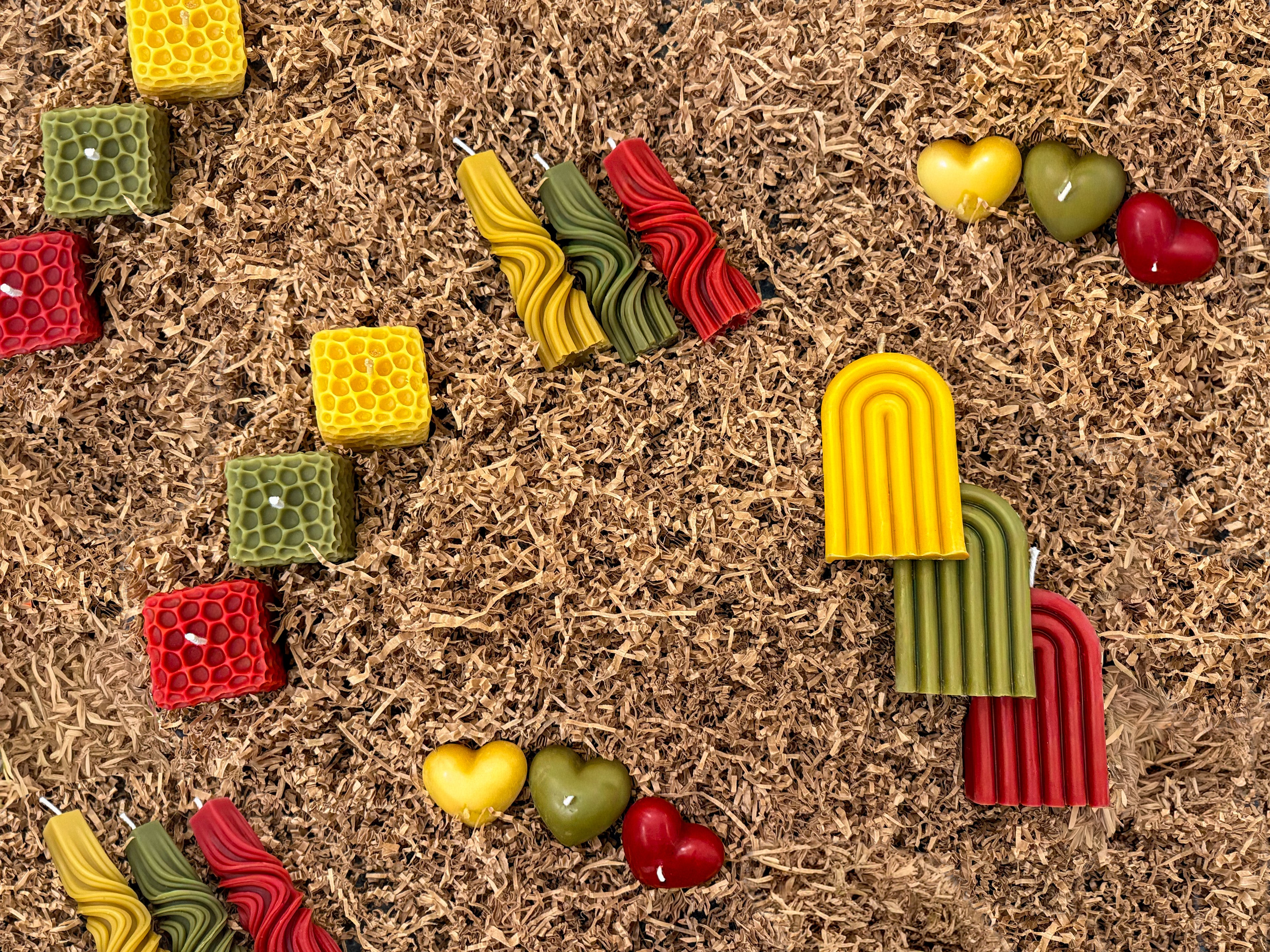 Rankų darbo žvakės iš 100 % natūralaus bičių vaško.